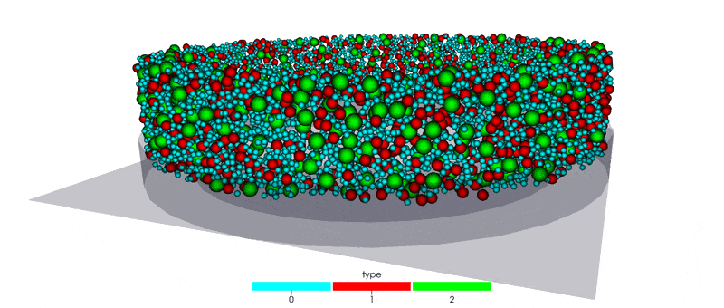 Another example is available at: exaDEM/example/spheres/cylinder_stl and is funny variant of Rotating drum simulation .